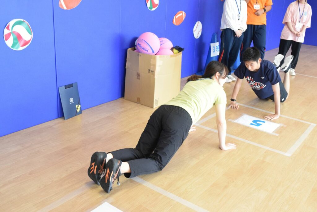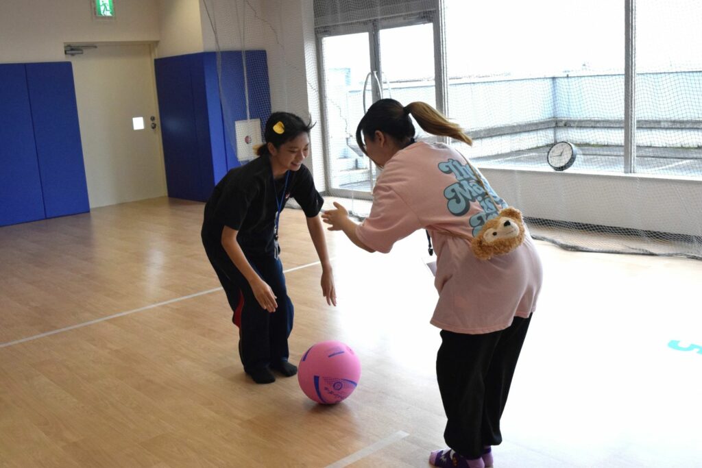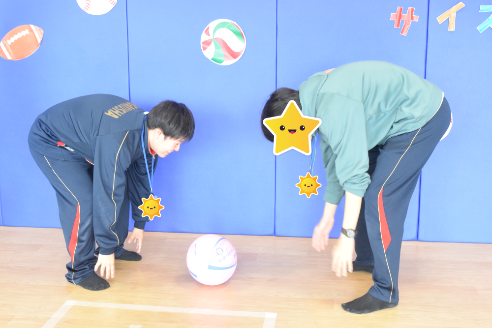飯沼先生の合図に会わせて、先にボールをとったほうが勝ち!反射神経が問われます💪