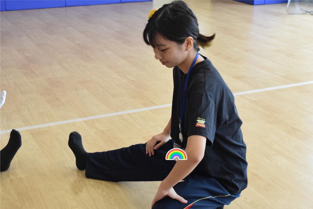 保健体育科の飯沼先生の指導のもと、まずはストレッチをして身体をほぐします。けがをしないためにも大切です!✨