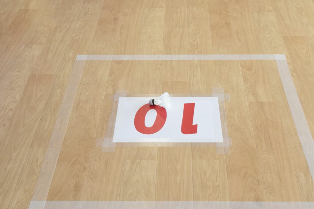 バドミントンの羽を投げて、数字の書いてある枠内に入ればポイントゲット!より多くポイントを稼いだチームの勝利です✨