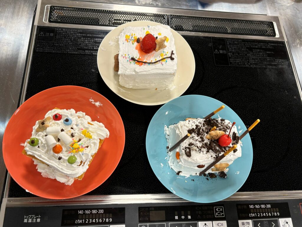 出来上がったケーキは皆さんで美味しくいただきました😋